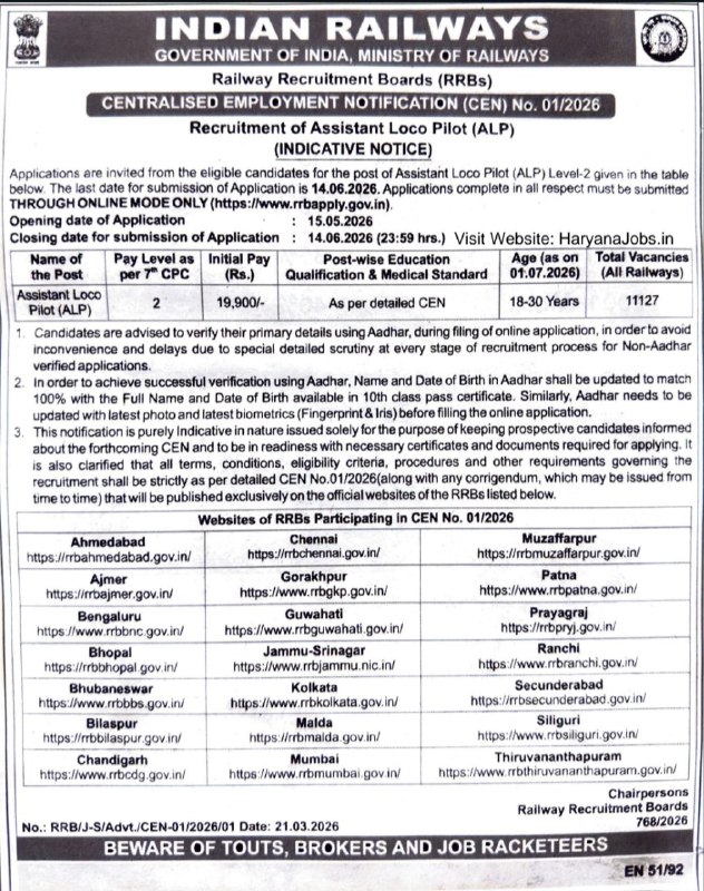 Railway RRB ALP Recruitment 2026 – 11,127 Posts Notification, Apply Online